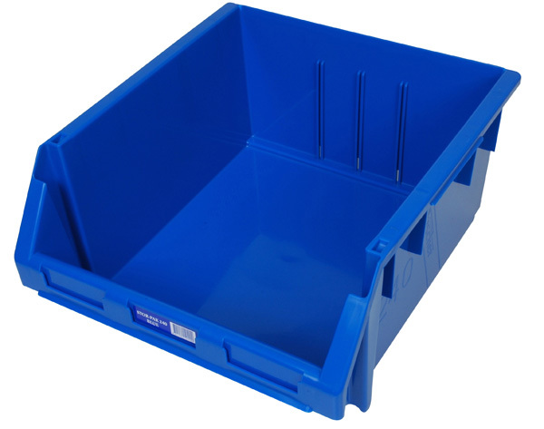 Dimensions: 410 x 440 x 210mm Made from tough polypropylene. Angled front for easy access. Stackable Six sizes, 5 colours. Will fit louvre panel I.D. Slots in front of bin Available in blue, green, red, yellow and clear.